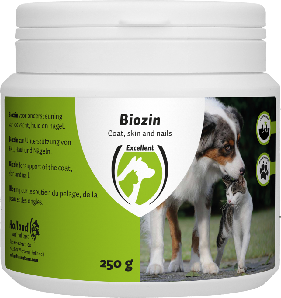 Ondersteuning en verzorging van huid, vacht, nagel en voetzooltjes.