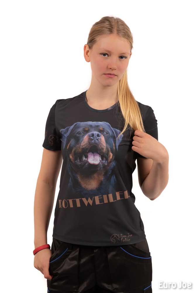 Comfortable t-shirt printed with print of a nice Rottweiler head