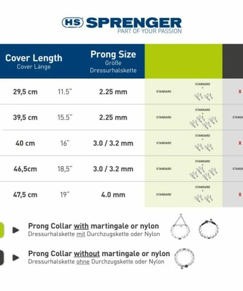 Nylon cover with hook-and-loop closureSprenger collar suitable for all chains that is a slip chain or has cliclock.