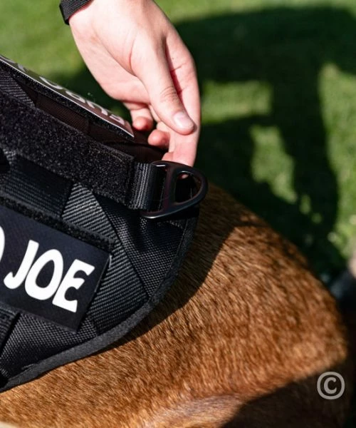 There are several strips of Velcro on the harness, which gives you the opportunity to apply various name badges.
