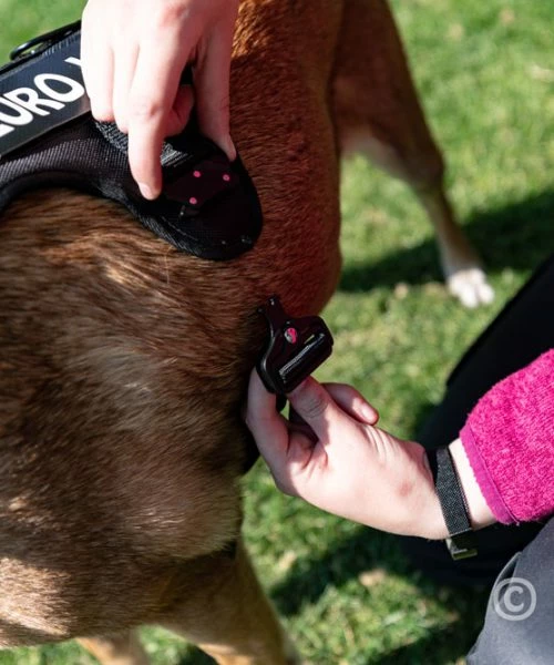 There are several strips of Velcro on the harness, which gives you the opportunity to apply various name badges.