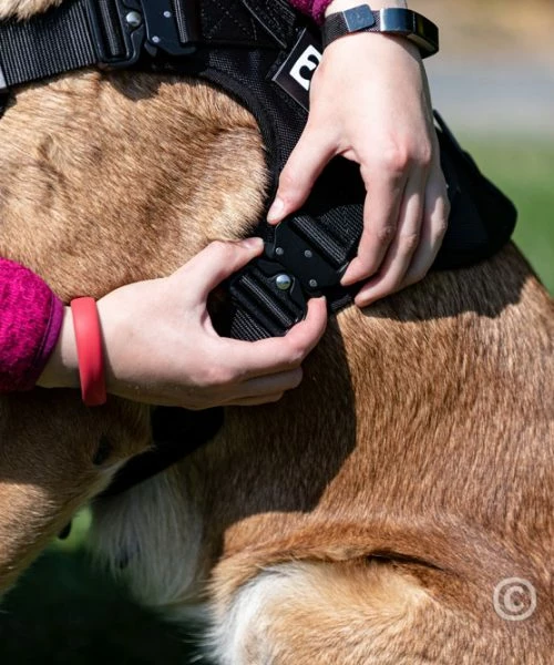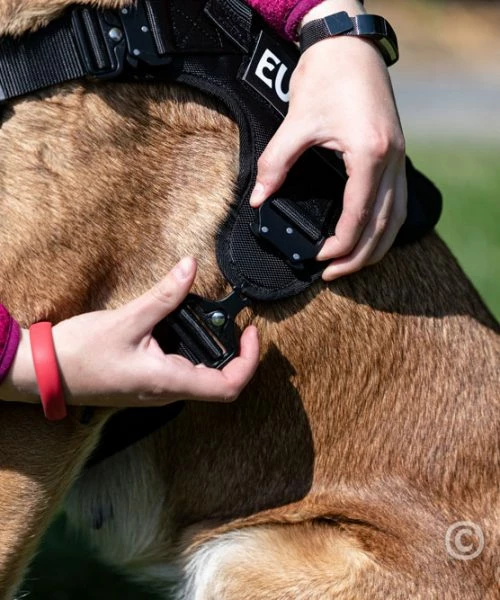 There are several strips of Velcro on the harness, which gives you the opportunity to apply various name badges.